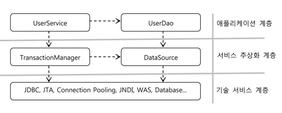 이러한 문제를 해결하기 위해 트랜잭션 동기화라는 방법을 사용할 수 있다. 이는 커넥션 오브젝트를 특수한 저장소에 보관하고 dao에서는 이 저장된 커넥션을 필요할 때마다 사용하도록 한다는 것이다.