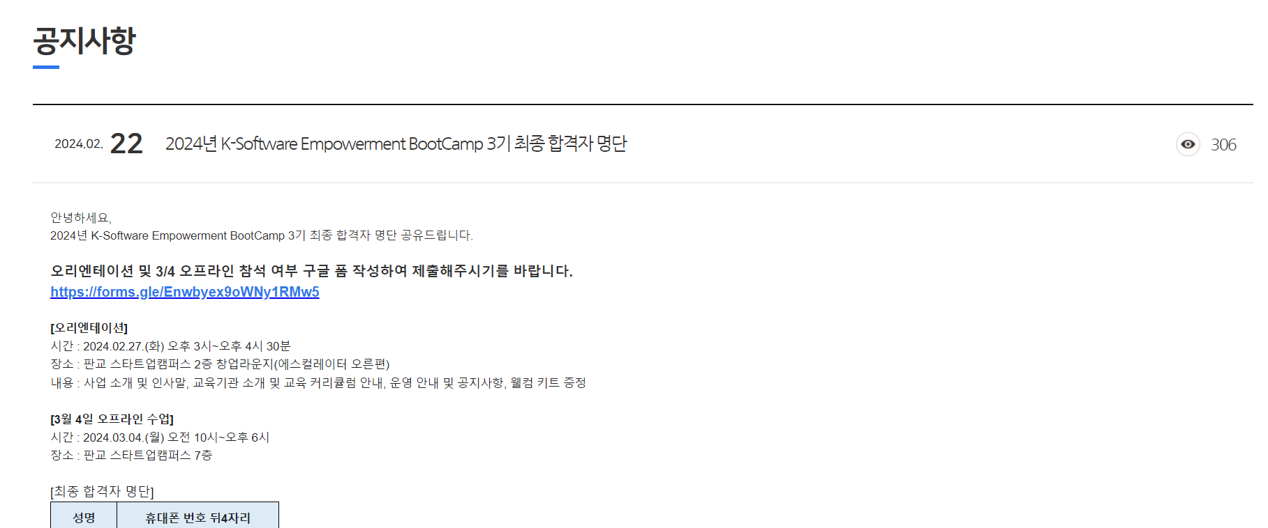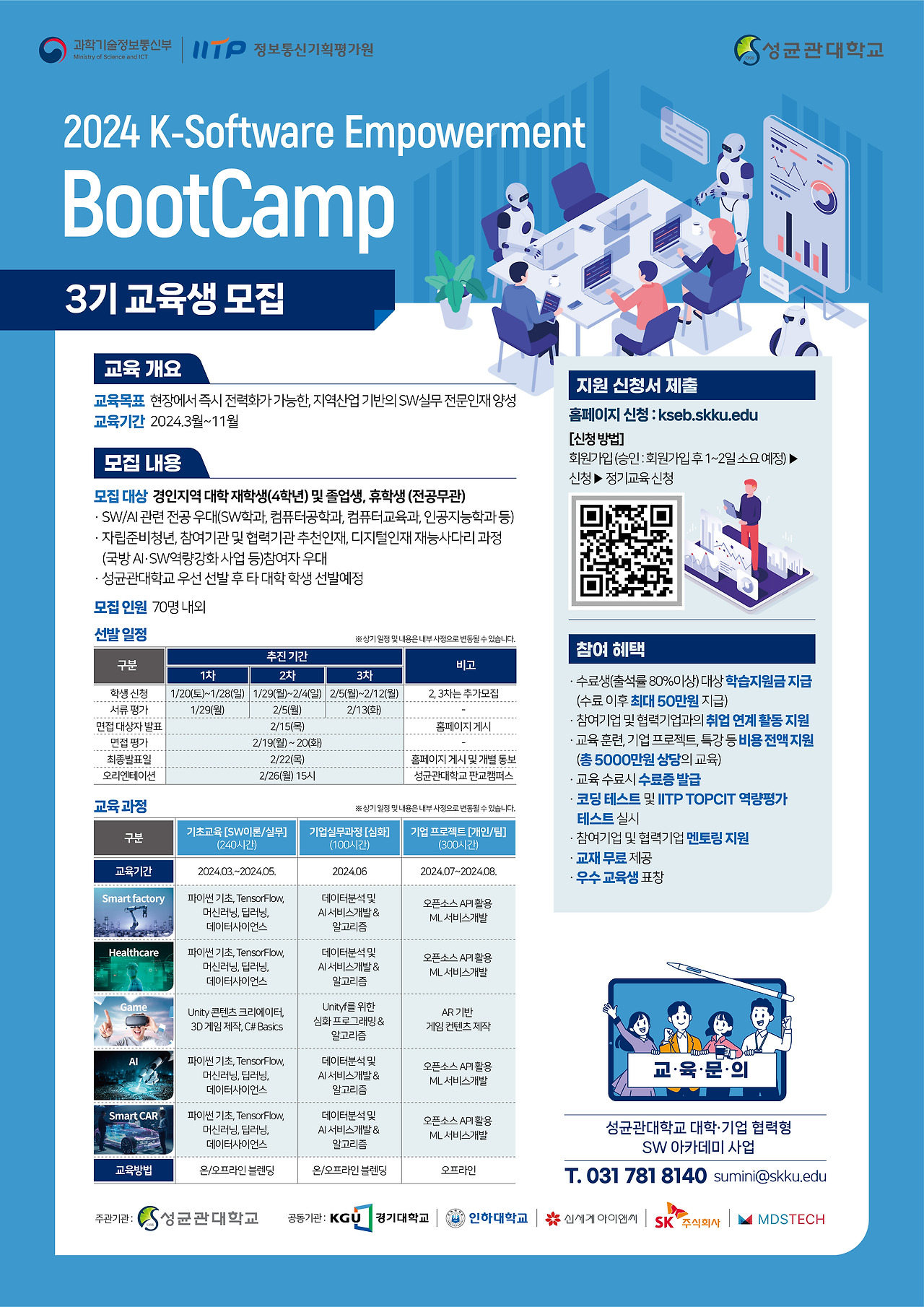 과학기술부와 정보통신기획평가원, 성균관대가 주관하는 모 부트캠프에 합격했습니다.
