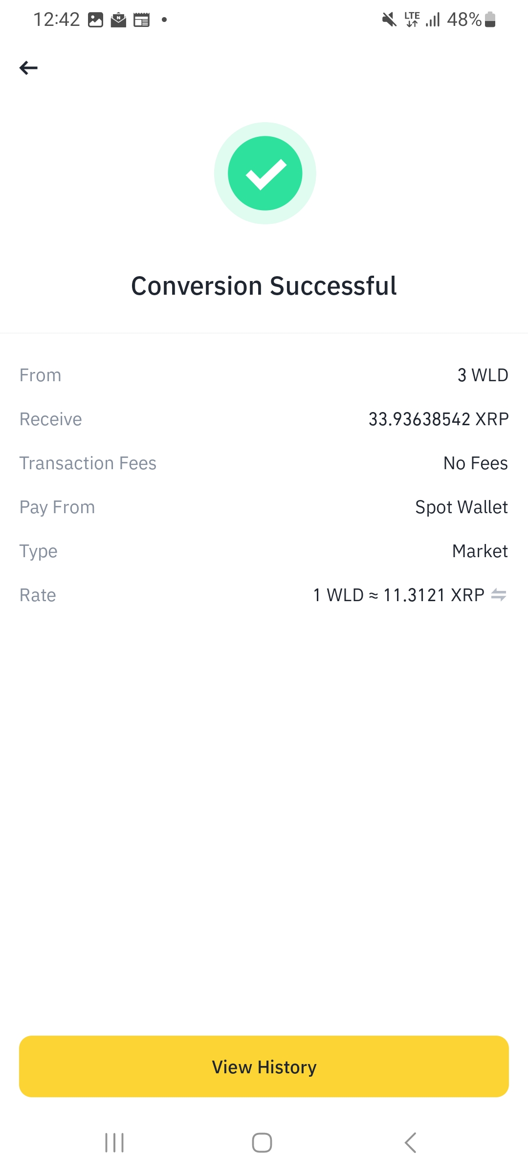 그러고 나면 성공적으로 바이낸스 지갑에 당신의 월드코인이 들어올 것입니다.