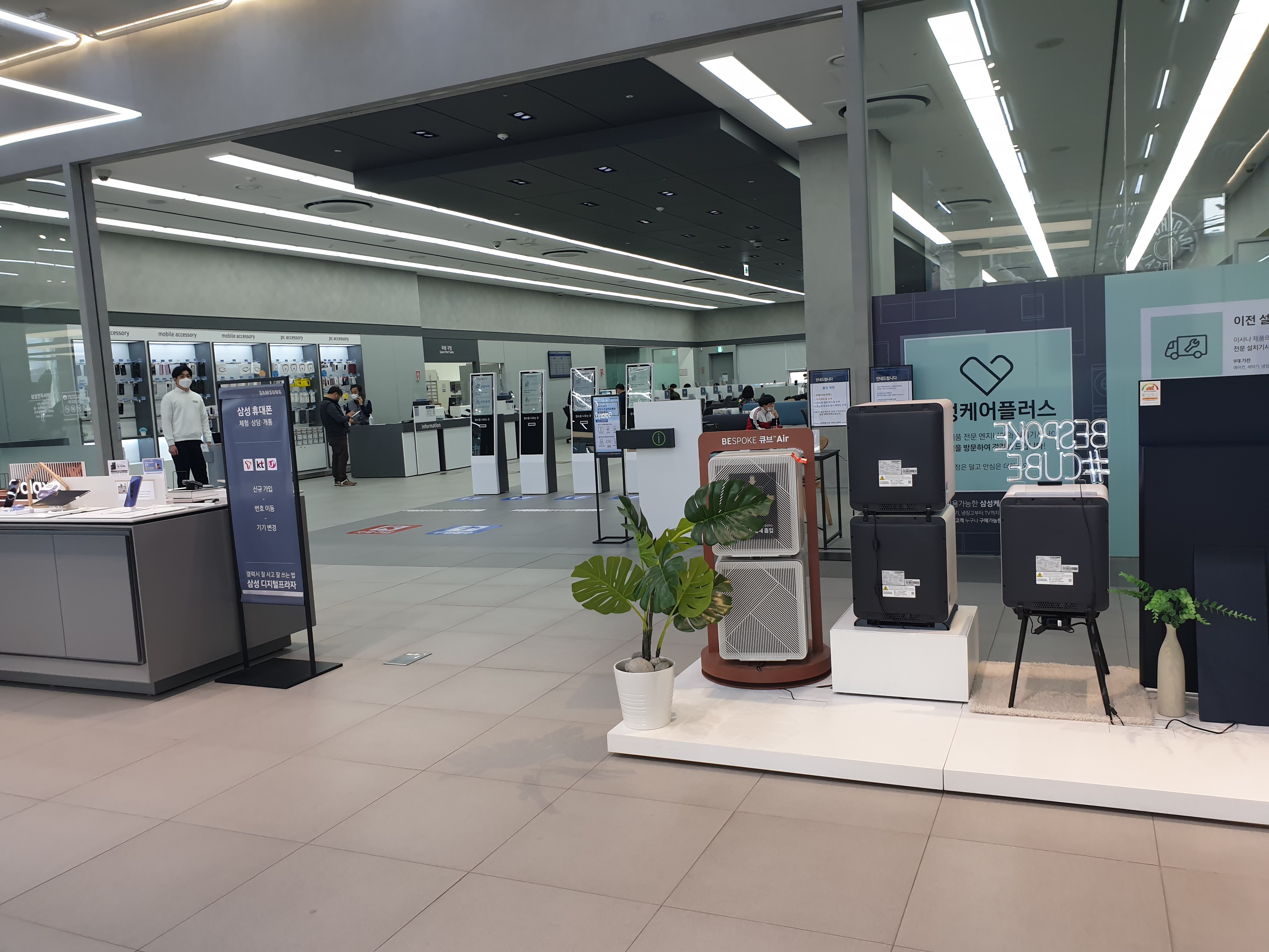 앞에는 가전제품, 스마트폰, 노트북 등을 판매하는 코너