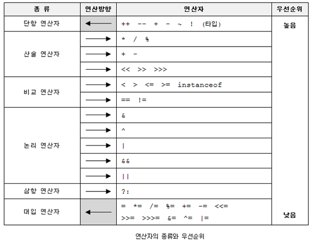 연산방향은 특히 논리 연산자에서 자주 사용된다. 만약 ||의 좌측에 false가 들어가도록 한다면 연산에 들어가는 시간을 아낄 수 있다는 말이 된다.