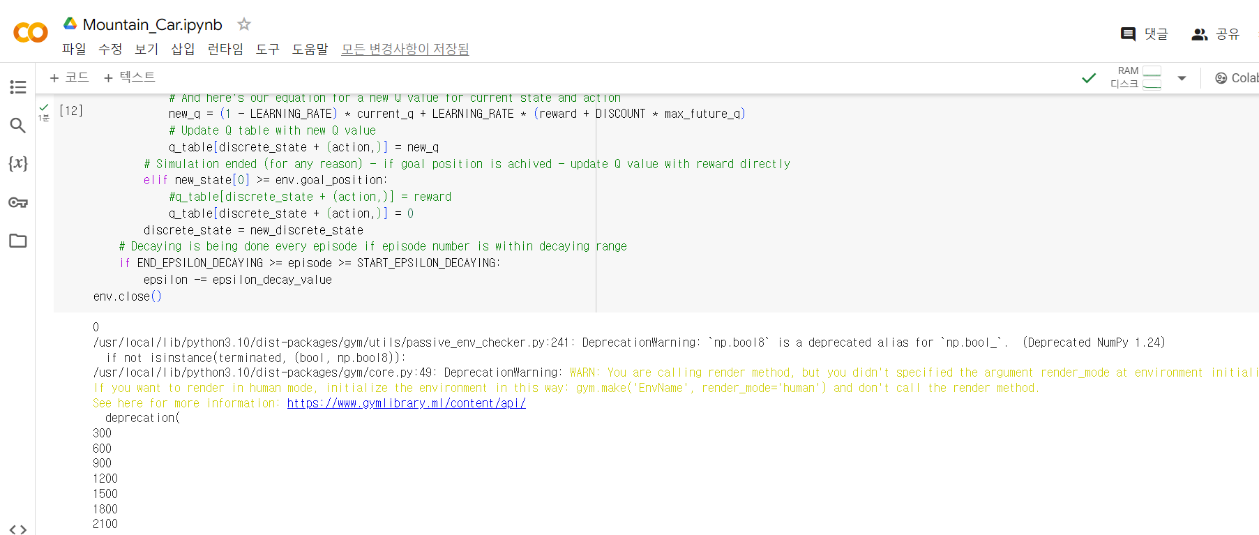 그러고 나면 ipynb로 쓰여졌다는 메시지가 뜹니다.