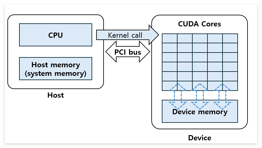 첫 번째로 호스트에서 디바이스 데이터로 데이터가 복사됩니다.