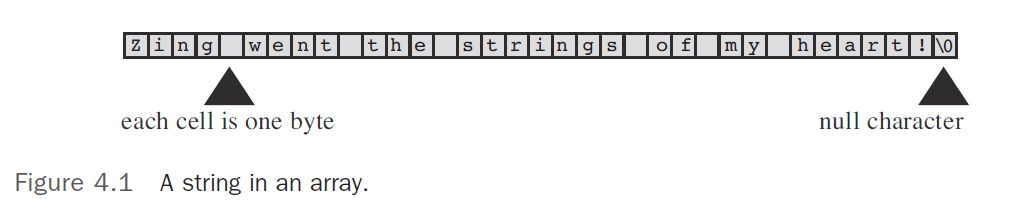 문자열의 마지막에는 출력되지 않는 \0, 즉 NUL이 붙는다.