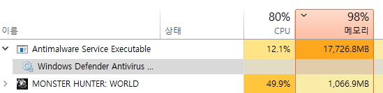 windows 11을 사용하다보면, 가끔 메모리를 보기 위해 작업 관리자를 켠다. 그러면, 상단에 Antimalware Service Executable가 나오는데 생각보다 메모리를 많이 잡아먹는다.