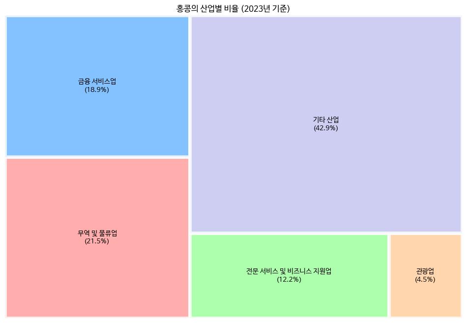 plt.title('홍콩의 산업별 비율 (2023년 기준)')