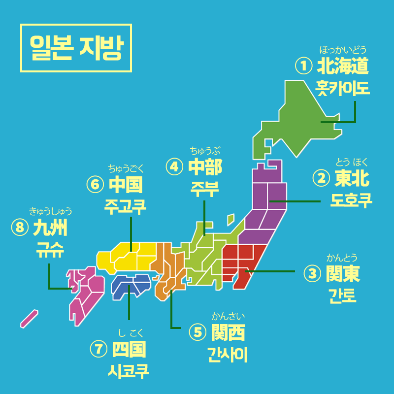 한국에서 영남, 호남처럼 일본도 지역별로 이름이 있습니다.