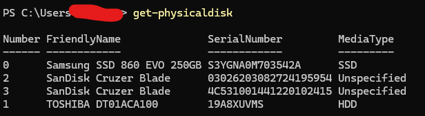 MediaType 에 HDD, SSD 등으로 물리적 디스크의 종류를 확인할 수 있다