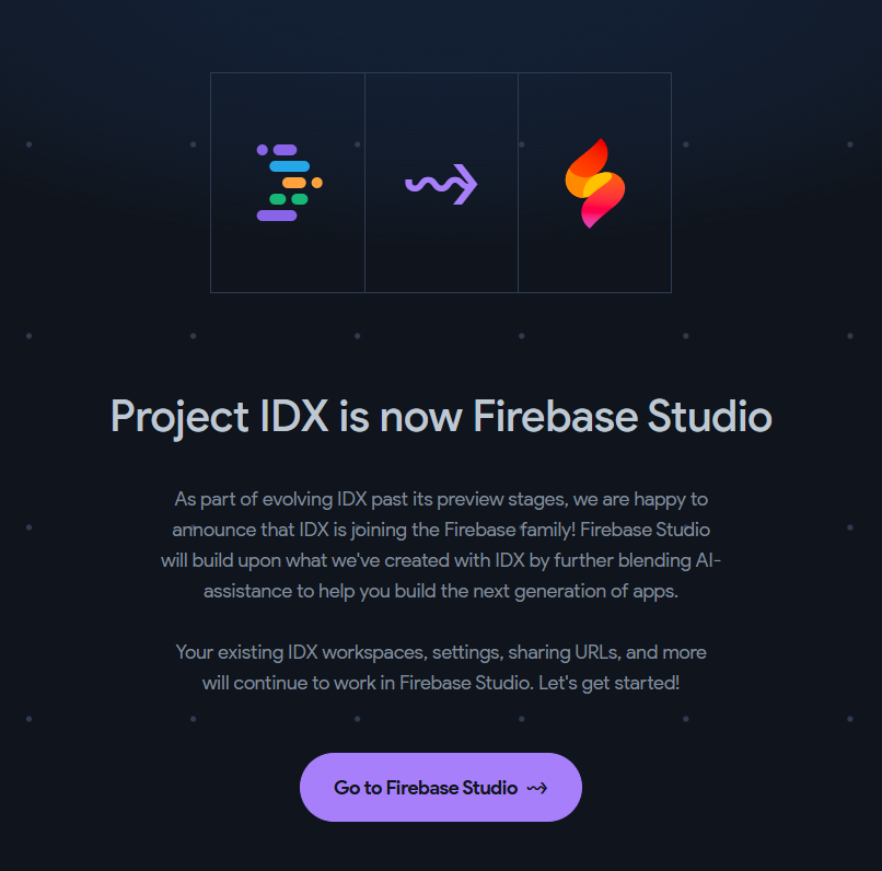 파이어베이스 스튜디오 역시 구글의 AI 기반 앱 프로토타입 서비스입니다. 아마 파이어베이스로 통합이 된 것 같네요. 커서와 같은 프로그램인 것 같습니다.